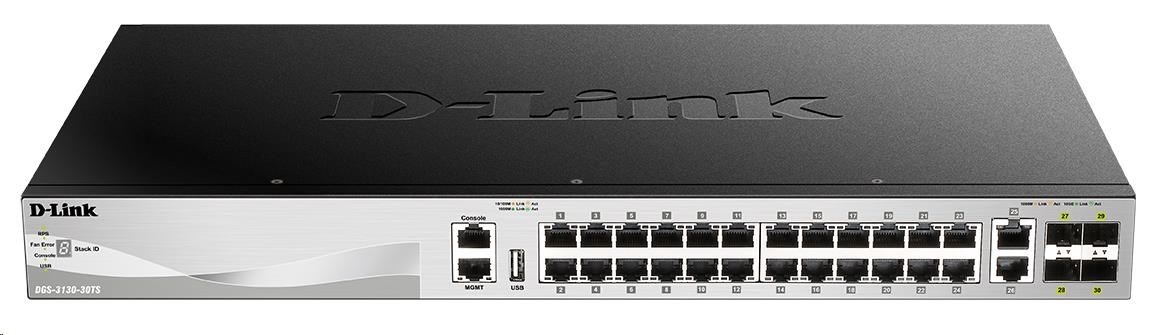 D-Link DGS-3130-30TS/E L3 Stackable Managed Gigabit Switch, 24x gigabit, 2x 10GBASE-T, 4x SFP+