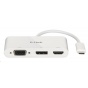 3-in-1 USB-C to HDMI/VGA/DisplayPort Adapter - Windows: 3 outputs simultaneously, with HDMI 4K @ 30 Hz, DisplayPort 4K @ 30 Hz and VGA 1080p @ 60 Hz - Macintosh: 3 outputs simultaneously, with HDMI 1080p @ 60 Hz, DisplayPort 1080p @ 60 Hz and VGA 1080p @ 60 Hz - Ultra HD video resolution up to 4K @ 30 Hz - Supports HDMI 1.4 and DisplayPort Alternative Mode over USB-C - HDCP 2.2 Compatible - Full HD video resolution up to 1080p @ 60 Hz - Simply plug and play, no software required - Small and compact design makes it easy to take with you wherever you go - Material: Plastic.