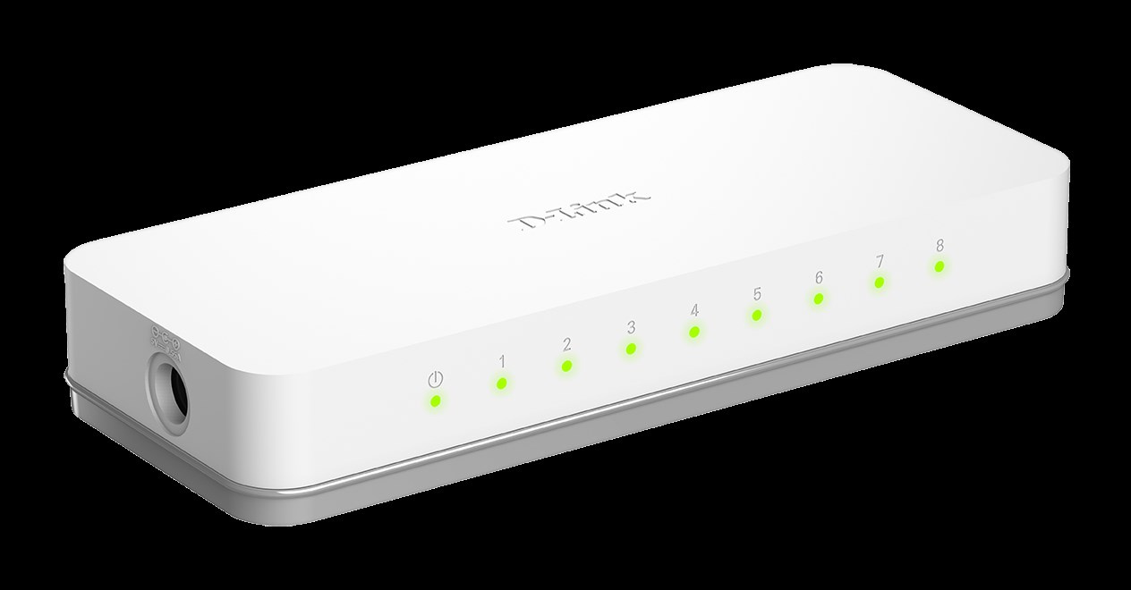 8-Port 10/100M Desktop Switch - IEEE 802.3 10BASE-T - IEEE 802.3u 100BASE-TX compliance - Support Auto-Negotiation for each port - Support Half/Full-Duplex operations at 10/100Mbps. - Support back pressure at Half-Duplex operation - IEEE 802.3x Flow Control support. - Auto MDI/MDIX- D-link Green - D-Link Green power saving Technology.