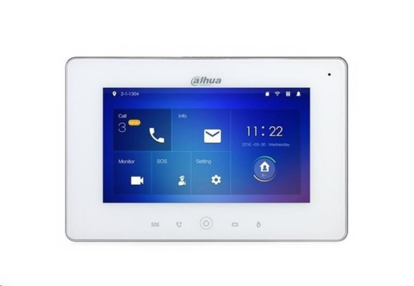 Dahua VTH5221DW-S2, IP, 7" dotykový, 1024x600, Ethernet, Wi-Fi, PoE 802.3af, paměť, CZ menu, SIP protokol, bílý
