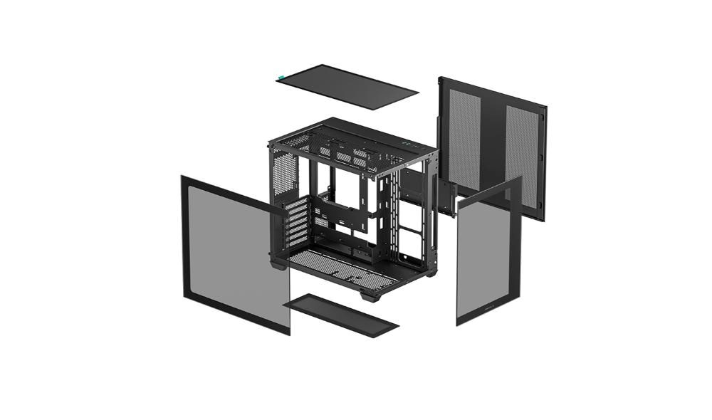 Zažijte dokonalé předvedení své sestavy díky otevřenému designu bez středového sloupku. Skříň CG530 nabízí elegantní konstrukci s bočním a předním panelem z tvrzeného skla, které umožňují čistý a ničím nerušený pohled na všechny komponenty. Vaše sestava se tak stane skutečnou ozdobou i uměleckým kouskem.