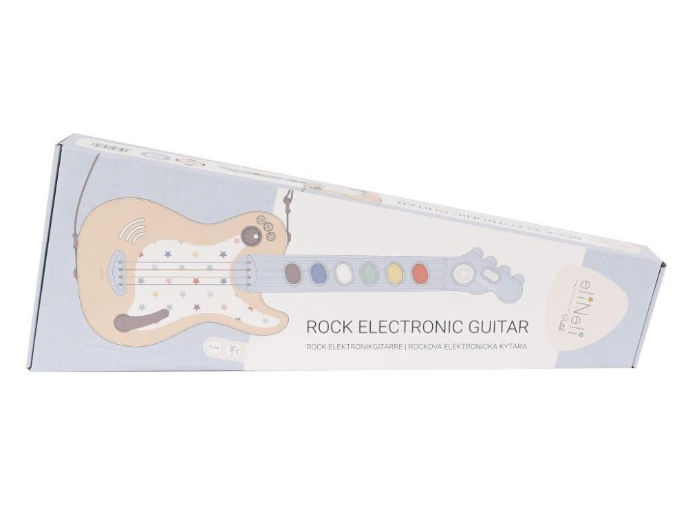 Dětská elektrická kytara, v kombinaci jemných pastelových barev s barvou přírodního dřeva, promění každé dítě v rokovou hvězdu. Hudební hračka v podobě elektrické kytary probudí lásku k hudbě u každého dítěte, zdokonaluje motorické dovednosti, rozvíjí sluchové vnímání, fantazii a kreativitu, umožňuje dětem hrát role. Pro snadné přenášení je součástí kytary praktický popruh..