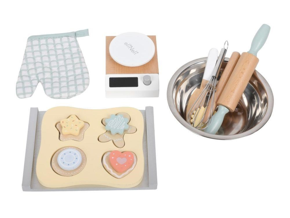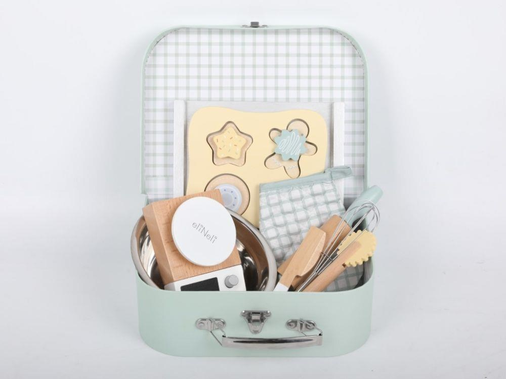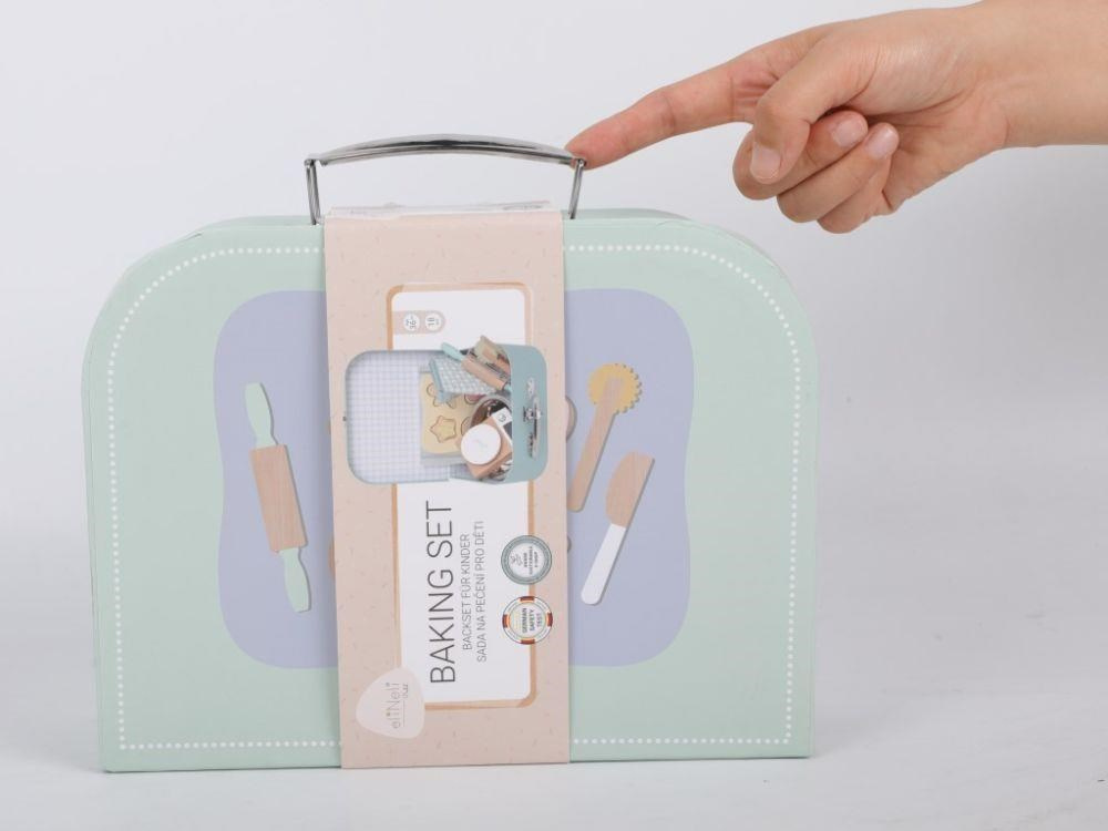 Dětská sada na pečení uložená v praktickém kufříku umožní dětem péct perníčky a sušenky kdekoliv se jim zachce - v kuchyni, v dětském pokoji, dětské kuchyňce, v zahradním domečku a klidně i na návštěvě u kamaráda nebo babičky, bezpečným dětským způsobem. Obsahuje vše potřebné pro upečení lahodné svačinky, kuchyňskou váhu, nádobí, náčiní, těsto i rukavici. Kufřík umožní dětem celou sadu rychle uklidit i přenášet..