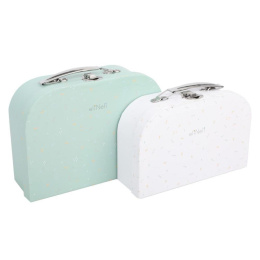 Sada dětských kufříků představuje stylový úložný prostor, pomocníka v úklidu i praktické zavazadlo k uschování a přenášení hraček, výtvarných potřeb a dalších drobností. Díky neutrálním barvám jsou dětské kufry vhodné pro holčičky i kluky, do každého interiéru. Kufříky samozřejmě mohou využít i mamky k uložení šicích potřeb a dalších potřeb pro své koníčky..