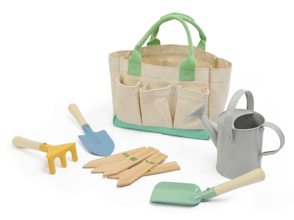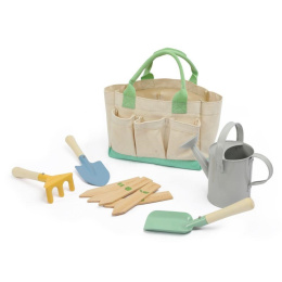 Sada dětského zahradního nářadí promění každé dítě v malého zahradníka. S dětským nářadím vám bude vaše holčička nebo chlape ochotně pomáhat na zahradě, hloubit díry rýčem, odhazovat hlínu lopatkou a pak vše pěkně urovná hráběmi. Součástí sady jsou i dřevěné cedulky a samozřejmě konev na zalévání, bez vody by nic nevyrostlo. Plátěná taška usnadní úklid i přenášení zahradnické sady..