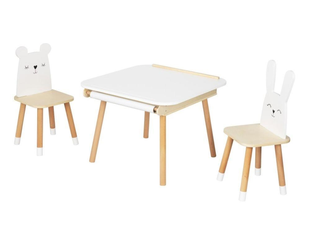 Dětský rostoucí set nábytku, rostoucí stůl s rostoucími židlemi, je krásným doplňkem do dětského pokoje, který poroste s vašim dítkem. Celý set dětského nábytku může povyrůst o 5 nebo 10 cm. Pod deskou stolu se ukrývá praktický úložný prostor, součástí je držák na roli papíru i magnetický držák přímo na desce stolu. Díky neutrálním barvám je dětský stolek s židlemi vhodný pro holčičky i chlapce, do každého interiéru..