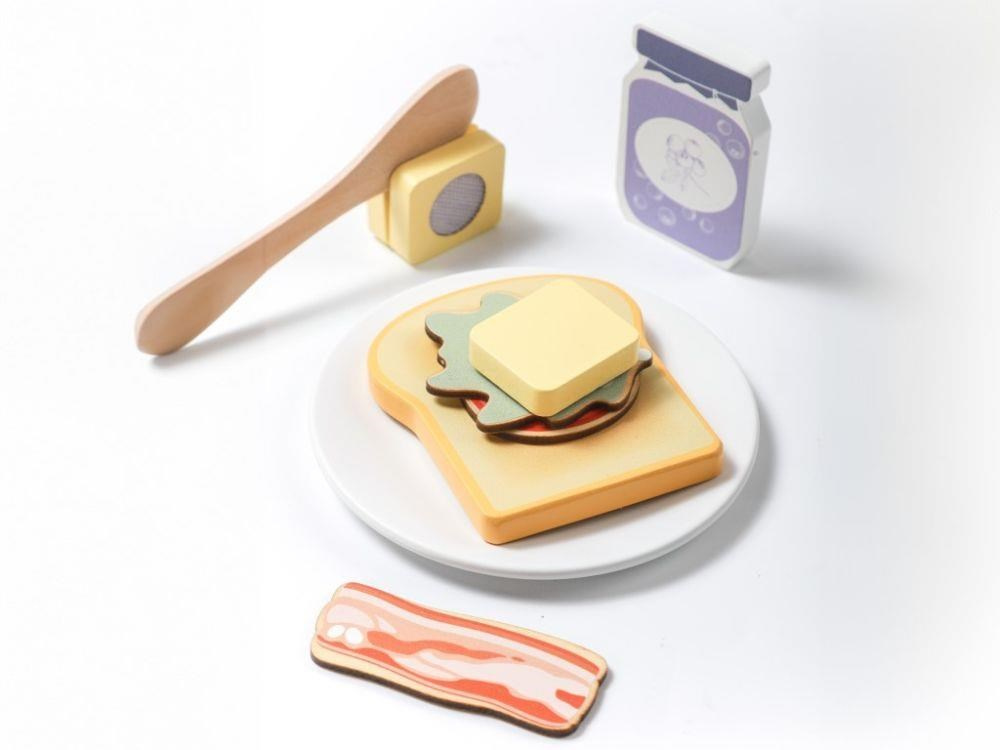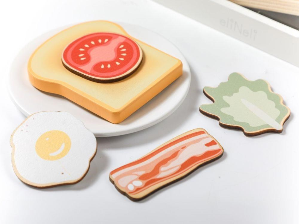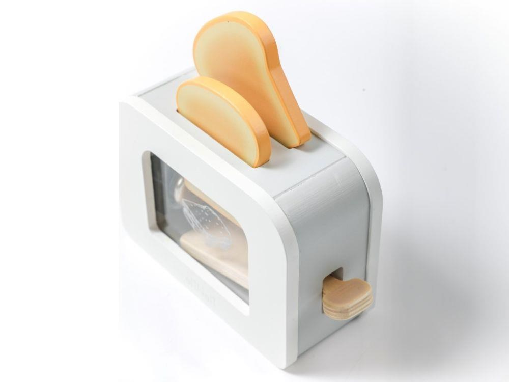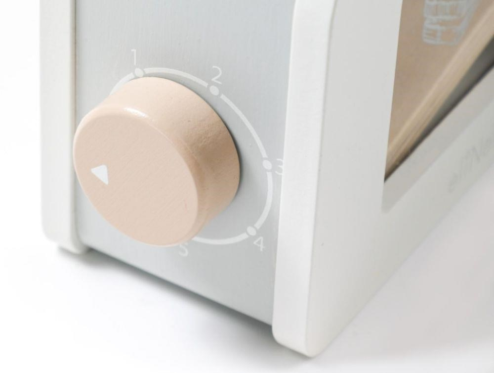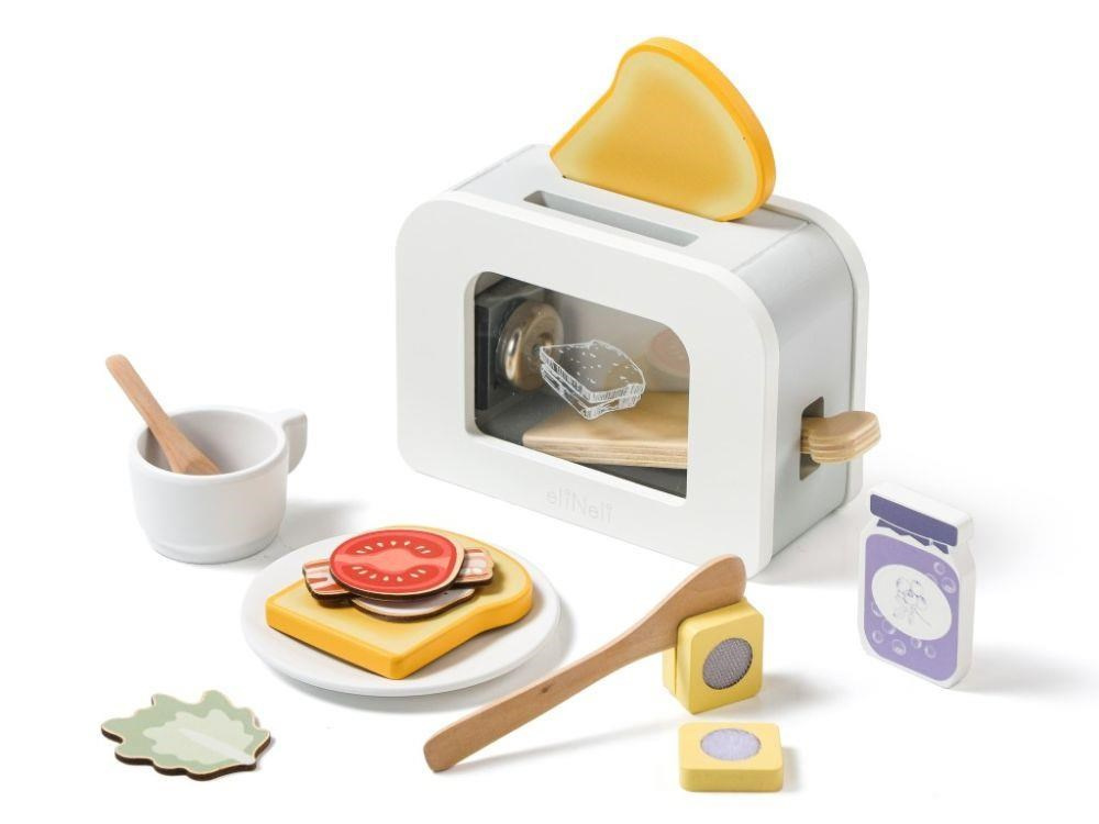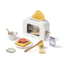 Dřevěný toustovač v jedinečném designu, s průhlednou vnitřní částí, je edukativní hračkou, která umožní dětem každý den připravovat křupavé tousty s máslem, džemem, se slaninou, salátem nebo rajčátkem pro oblíbené panenky, plyšáky i rodiče. Dřevěná hračka v podobě dětského toustovače s příslušenstvím je stylovým doplňkem do dětské kuchyňky nebo obchůdku..