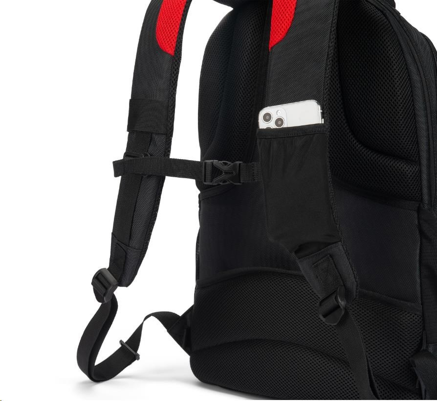 Polstrované ramenní popruhy s hrudním popruhem a elastickou kapsou na smartphone