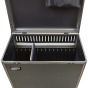 The trolley makes it possible to charge 20 tablets or ultrabooks at once, so you remain flexible at all times and don't have to worry about there being no sockets. An adjustable divider allows for the device module to be adapted to notebooks measuring up to 21 x 254 x 380 mm (16 inches) in size. The devices are placed between ABS panels and each given their own place. All power is supplied completely on a removable mounting plate which has its own internal power distribution, is mutually compatible with the GST18 connector, and features a C14 power entry module with an integrated switch and automatically resettable fuse. To protect the devices from overheating, the trolley features a powerful yet quiet fan. Maximum protection is provided by the rugged aluminium and con-pearl construction with built-in lock, the sliding handle, and four high-quality castors for convenient transport. Small items such as power cords can be stored in the pocket on the lid. The charging case comes equipped with country-specific connector strips (internal power distribution, mutually compatible with GST18).
