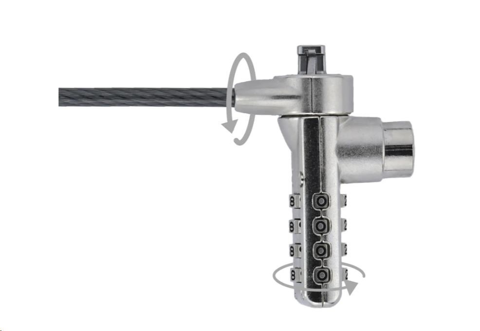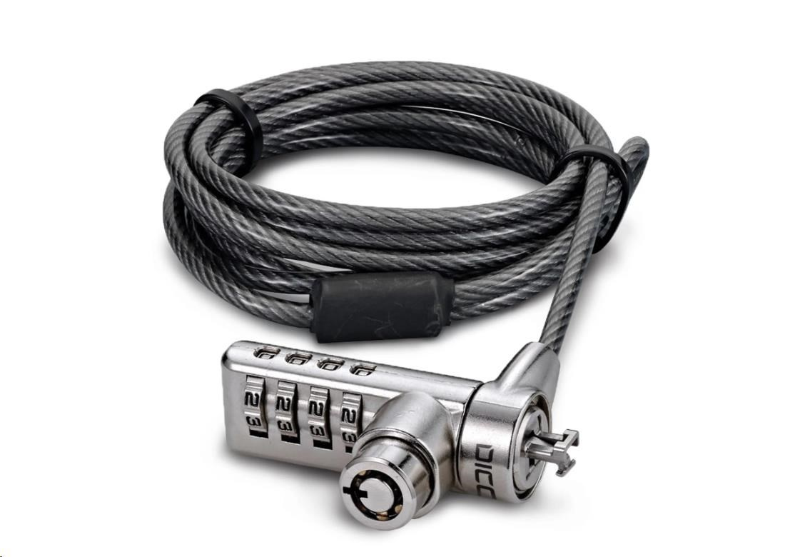 Tento zámek DICOTA se hodí do všech standardních slotů T-Lock (T-Bar*): lze účinně zabezpečit notebooky, projektory, tiskárny a monitory. Ocelové lanko o délce 200 cm a průměru 4,8 mm je navrženo tak, aby bylo mimořádně dlouhé a mimořádně pevné. Notebooky, projektory, tiskárny a monitory lze účinně zajistit. Čtyřmístná kombinace umožňuje nastavit individuální číselný kód z 10 000 možných číselných kombinací zajišťuje potřebné zabezpečení. Tento zámek se používá v systému nadřazeného zámku, který umožňuje přístup jednotlivým uživatelům i správci systému prostřednictvím hlavního klíče. Každý systém je individuálně navržen a vyroben speciálně pro vás. Podrobnosti s vámi rád probere váš partner DICOTA. *T-Bar™ je ochranná známka třetí strany bez vazby na společnost DICOTA SCHWEIZ AG.