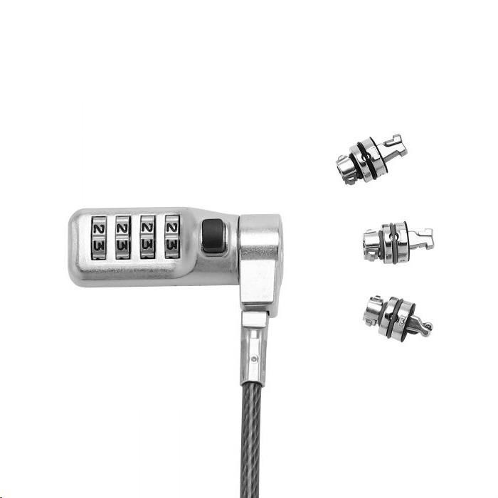 Universal Security Cable Lock, 3 Exchangeable heads fits all slots, preset code