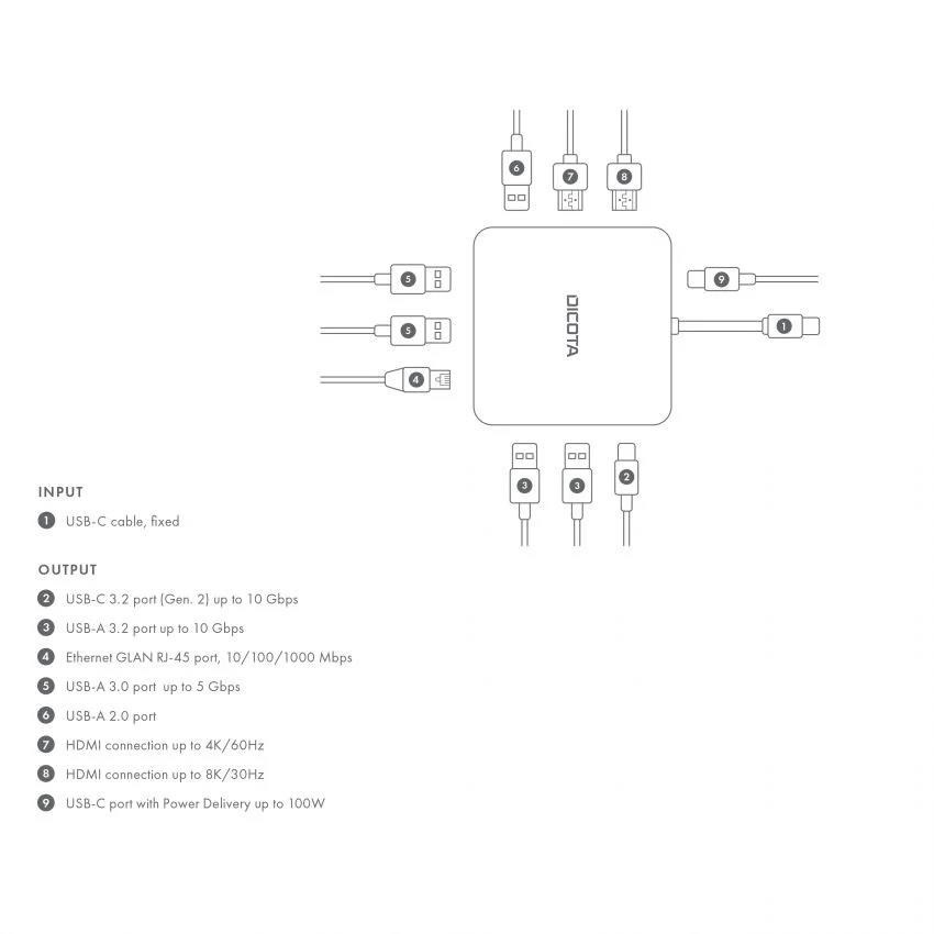DICOTA USB-C 10-in-1 Docking Station 8K HDMI PD 100W