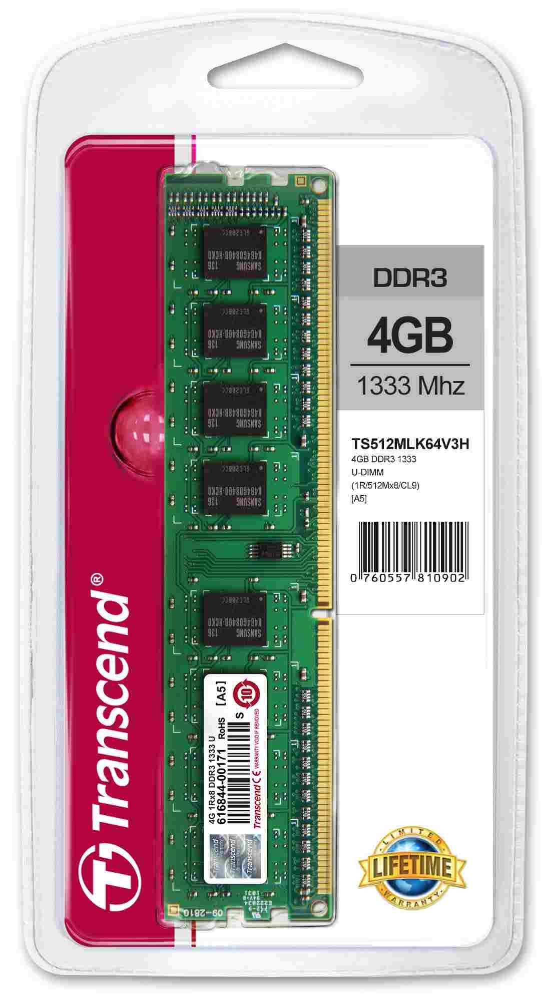 TRANSCEND DIMM DDR3 4GB 1333MHz 1Rx8 CL9