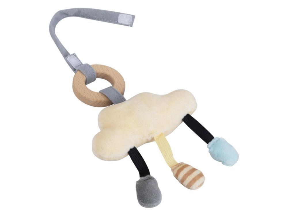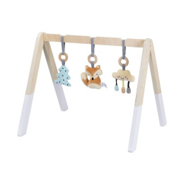 Dřevěná dětská hrazdička se závěsnými hračkami v podobě roztomilé lištičky, stromečku a obláčku upoutá pozornost každého miminka. Dětská hrazdička v neutrálních barvách, vhodná pro holčičky i chlapce, stimuluje dětské smysly, motivuje miminka k pohybu a prozkoumání závěsných prvků. Každou z měkkých hraček můžete z dřevěné hrazdičky sundat a použít jako samostatné hračky..
