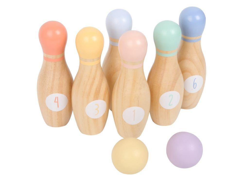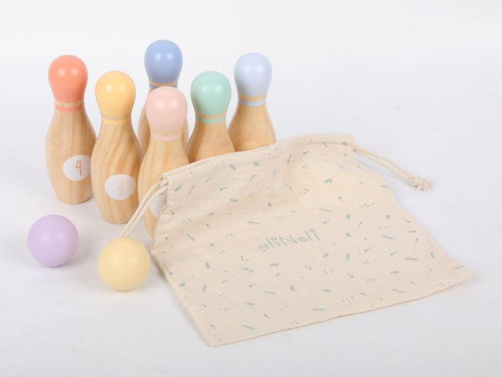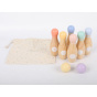 Sada dřevěných kuželek s koulemi umožní dětem i celé rodině zahrát si kuželky kdykoliv a kdekoliv. Kuželky v kombinaci přírodního dřeva s pastelovými barvami jsou ideální pro seznámí s touto hrou, k uspořádání soutěže i domácího kuželkového turnaje. Stačí čistý a rovný podklad a zábava může začít. Součástí balení je praktický plátěný pytlík, který usnadní úklid i přenášení kuželek na zahradu, domů, na návštěvu nebo na dovolenou..