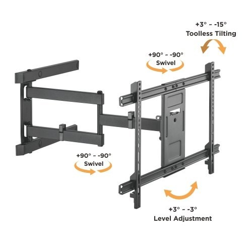 Držák LCD LED Tv Fiber Mounts TALL1 Vynikající nástěnný držák na Tv 37-80", otočný, sklopný, výsuvný, VESA standardy 200x100 až 600x400, nosnost 50kg Kvalitní nástěnný držák na LCD, LED a plazmové televize s úhlopříčkou 37-80". Držák má kvalitní konstrukci, která unese televize s hmotností až 50kg, spolehlivou a bezpečnou instalaci na stěnu zaručují delší nástěnné lišty, díky nimž se celková hmotnost rozloží na velkou plochu. Podporuje VESA standardy pro zavěšení Tv s roztečí 200x100 až 600x400. Držák TALL1 umožňuje televizí otáčet do stran, naklápět, vysouvat a přisouvat ke zdi, snadno upravit rovinu obrazu. Barevné provedení černé. Záruka 5 let. Kvalitní držák Tv 37-80", otočný, sklopný a výsuvný - Fiber Mounts TALL1 Technické údaje: nosnost 50 kg vhodný na televize s úhlopříčkou 37-80" podporuje VESA standardy 200x100 až 600x400 výsuvný od zdi v rozmezí 76 - 620 mm otáčení do stran +/- 90° náklon Tv +3° až -15° korekce roviny +/- 3° kvalitní konstrukce prodloužené nástěnné lišty pro bezpečné ukotvení a perfektní rozložení hmotnosti velmi snadná instalace díky šabloně na předvrtání děr do zdi barevné provedení černé záruka 5 let Výsuvný držák Tv 37-80", otáčení Tv do stran, naklápění Tv - Fiber Mounts TALL1 Nástěnný držák na Tv Fiber Mounts TALL1 podporuje VESA standardy: VESA 200x100 VESA 200x200 VESA 300x200 a 200x300 VESA 300x300 VESA 400x200 a 200x400 VESA 400x300 a 300x400 VESA 400x400 VESA 600x400 Držák Tv Fiber Mounts TALL1 je vhodný na všechny televize, které podporují kterýkoliv z výše uvedených VESA standardů a jejichž hmotnost není vyšší jak 50kg. Nástěnné lišty o délce 423mm zajistí spolehlivé a bezpečné ukotvení držáku do zdí. Každá lišta má 3 kotvící otvory. Díky tomu se celková hmotnost perfektně rozloží na velkou plochu a je zaručena vyšší bezpečnost. Držák je vhodný na instalaci na klasické cihlové, betonové a dřevěné zdi, ale i siporexové nebo z dutých cihel (u posledních dvou je nutné zakoupit k tomu určené hmoždinky). Instalace na sádrokartonové zdi je možná pouze v případě ukotvení do nosníků nebo výdřevy, samotný sádrokarton pro instalaci vhodný není..