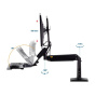 Držák monitoru a klávesnice NB NB35 Profesionální stolní držák na monitor 17-30" s poličkou na klávesnici 560x200mm, výškové polohování +/-480mm, naklápění +12°/-15°, otáčení +/-180°, pivot, možnost vysunutí a zaklopení police, přihrádka, 2x USB 3.0 porty, práce v sedě i vestoje, VESA 75x75 a 100x100, nosnost 9kg Univerzální stolní držák na monitor 17-30" a klávesnici pro ergonomické kanceláře, který Vám umožní kdykoliv změnit pozici pro práci jak vsedě tak i vestoje. Změna pozice je velmi snadná a rychlá, bez použití jakéhokoliv nářadí nebo složitého přenastavování - během okamžiku změníte výšku až o 480mm. Na držák je možné uchytit všechny typy monitorů s VESA standardem 75x75 nebo 100x100. Držák umožňuje snadné kompletní nastavení dle potřeby - otáčení do stran, výšková polohovatelnost, náklon obrazovky, posun a náklon police, vzdálenost od stolního uchycení, korekce roviny. Kvalitní duální úchyt pro zajištění na okraji stolu a perfektní fixaci. Profesionální kvalita, vynikající zpracování, krásný design a velmi snadné nastavení. Barevné provedení černé. Profesionální polohovatelný držák monitoru a klávesnice pro práci jak vsedě tak i vestoje NB NB35 Technické údaje: maximální zatížení 9kg minimální zatížení 2kg podporuje VESA standardy 75x75 a 100x100 možnost rozšíření VESA standardu na 200x100 nebo 200x200 ideální na monitory a televizory s úhlopříčkou 17-30" otáčení do stran +/- 180° náklon monitoru -12° / +15° funkce pivot - možnost polohy monitoru na šířku nebo na výšku maximální výška 950mm od stolové desky maximální délka od uchycení 1020mm celkové výškové nastavení +/- 480mm úprava výšky samotného monitoru na držáku 100mm police na klávesnici s rozměry 560x200mm možnost vysunutí police +/- 60mm, naklopení +/- 12°, možnost úplného zaklopení uchycení na okraj stolu, duální úchyt, na desky o síle 20-90mm 2x USB 3.0 port barevné provedení černé profesionální kvalita, snadná polohovatelnost záruka 3 roky Pracovní stanice - polohovatelný držák na monitor a klávesnici pro volbu, zda chcete pracovat vsedě nebo vestoje NB NB35Polohovatelný držák na monitor i klávesnici, výškové nastavení pro možnost práce vsedě nebo vestoje, snadné a rychlé polohování - Fiber Mounts NB35 Držák podporuje VESA standardy: VESA 75x75 VESA 100x100 Držák je vhodný pro uchycení všech typů monitorů a televizorů s úhlopříčkou 17-30", které podporují některý z výše uvedených VESA standardů a jejichž hmotnost je v rozmezí 2-9kg..