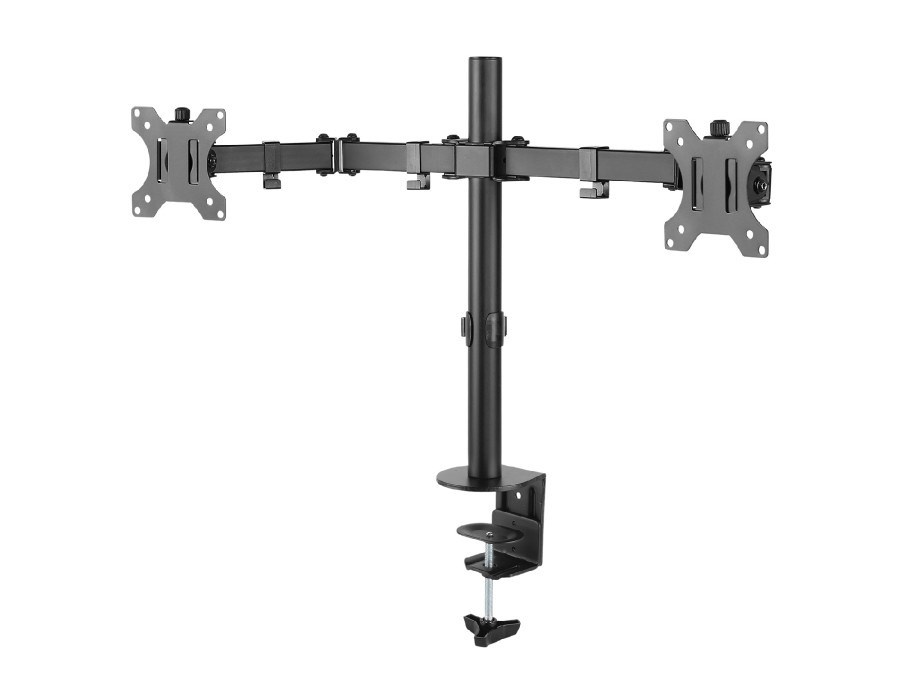Držák na 2 monitory Fiber Mounts M8C84 Držák s uchycením na okraj stolu na 2 monitory 15-30", nastavení pozice monitorů, kvalitní konstrukce, VESA standardy 75x75 a 100x100, nosnost 16kg Držák pro zavěšení 2 monitorů a uchycení na okraj stolu. Snadná instalace a nastavení monitorů do požadovaných pozic. Držák podporuje VESA standardy 75x75 a 100x100 a zavěsit můžete monitory s celkovou hmotností až 16kg. Držák má kvalitní konstrukci, zavěšení monitorů je naprosto spolehlivé a bezpečné. Dodáváme včetně instalačního materiálu. Záruka 5 let. Stolní držák na 2 monitory Fiber Mounts M8C84 Technické údaje: nosnost 16kg (2 x 8kg) na monitory s úhlopříčkou 15-30" podpora VESA standardů 75x75 a 100x100 délka stolové tyče 390mm nastavitelná výška ramen otáčení do stran +/- 180° naklápění +/- 45° maximální délka ramen 397mm uchycení na okraj stolu, tloušťka stolové desky 10-88mm robustní kovová konstrukce snadná instalace, pevné a bezpečné zavěšení monitorů úchytky na kabeláž instalační materiál barevné provedení černé záruka 5 let Držák na 2 monitory s uchycením na stůl Fiber Mounts M8C84 Držák M8C84 podporuje VESA standardy: VESA 75x75 VESA 100x100 Držák je vhodný na monitory a displeje s úhlopříčkou 15-30", uchycení držáku je možné na stolové desky o síle 10-88mm. Maximální možné celkové zatížení je 16kg, 2 monitory po 8kg..