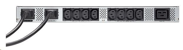 | Zvláštní charakteristiky | Poskytuje redundanci napájení IT zařízení Alternativa k drahým redundantním zdrojům napájení od prodejců síťových zařízení Kompaktní, výška 1U Hladce přepíná z jednoho zdroje na druhý Správa sítě LCD zobrazující měřené hodnoty a základní konfiguraci |