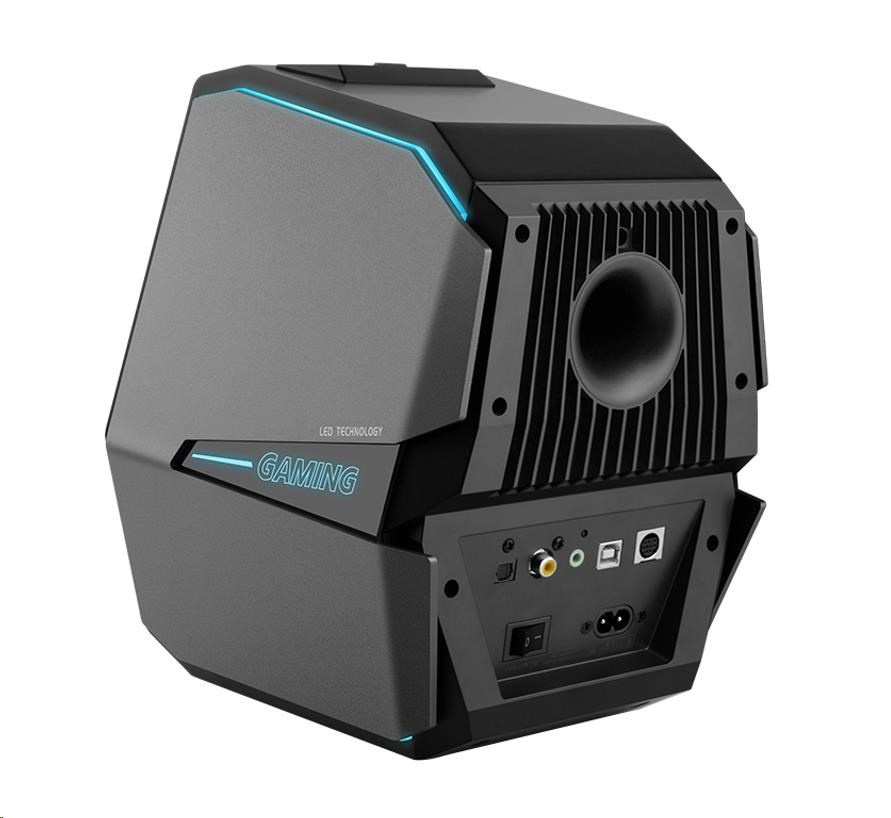 Sloučením dřevěné reproduktorové skříně s hliníkovými bočními panely, umožnili designéři zabudování špiščkovému osvětlení RGB, a vytvořili tak jedinečný vzhled.