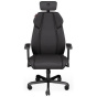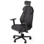 Robustní herní židle s atraktivním designem poskytuje dokonalou oporu a pohodlí i při dlouhém sezení u počítače. Je vyrobena z kvalitní prodyšné textilní látky a syntetické kůže. Nastavitelná výška židle, opěrky rukou nastavitelné ve všech směrech a úhel sklonu opěradla až 125° zajistí maximální komfort. Kolečka o průměru 60 mm jsou pokryta vrstvou odolného nylonu, který zároveň chrání podlahu před poškrábáním a snižuje hlučnost. Nosnost židle je až 120 kg.