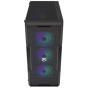 Skříň formátu Middle Tower s průhlednou bočnicí z tvrzeného skla nabízí dvě 2,5" pozice pro SSD disky a dvě 3,5" pozice pro pevné disky. Na horní části se nachází dva USB 3.0 porty, sluchátkový výstup a audio vstup pro mikrofon. Vybavena je čtyřmi 120 mm ventilátory s ARGB podsvícením, které spolu s perforovaným čelním panelem zajišťují dostatečné proudění vzduchu. Důmyslné řešení umožňuje pohodlné umístění až 360 mm dlouhého výměníku vodního chlazení na přední straně. Ve skříni je dostatek prostoru pro chladič CPU do výšky až 162 mm a grafickou kartu o délce až 370 mm. Dodávána je bez zdroje. Součástí je také interní ARGB ovladač a sada prachových filtrů.