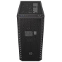 Skříň formátu Middle Tower nabízí dvě 2,5" pozice pro SSD disky a dvě 3,5" pozice pro pevné disky. Na horní části se nachází dva USB 3.0 porty, sluchátkový výstup a audio vstup pro mikrofon. Vybavena je jedním 120 mm ventilátorem, který spolu s perforovaným čelním panelem zajišťuje dostatečné proudění vzduchu. Důmyslné řešení umožňuje pohodlné umístění až 360 mm dlouhého výměníku vodního chlazení na přední straně. Ve skříni je dostatek prostoru pro chladič CPU do výšky až 161 mm a grafickou kartu o délce až 350 mm. Dodávána je bez zdroje. Součástí je také sada prachových filtrů.