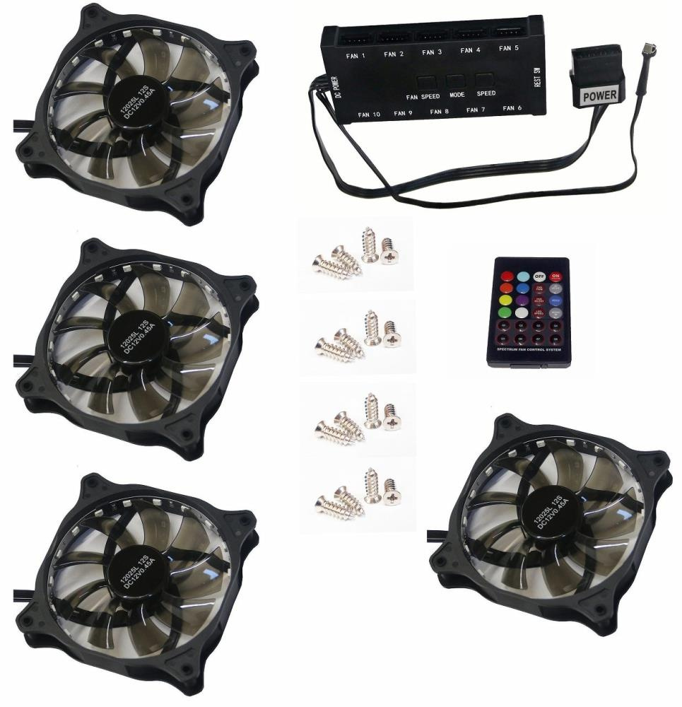 EUROCASE ventilátor RGB 120mm (FullControl spot Led), set 4ks + controller
