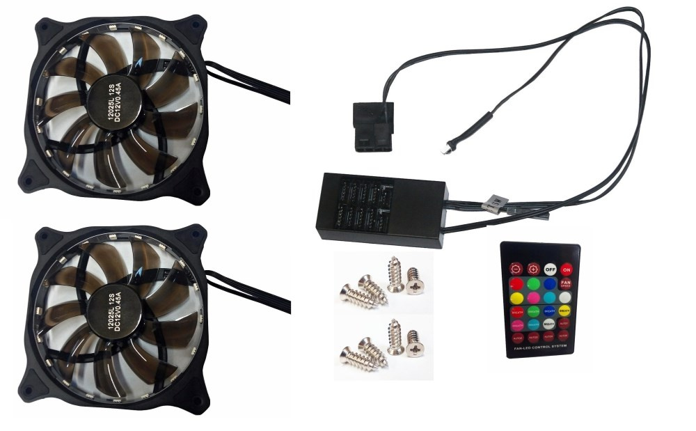 EUROCASE ventilátor RGB 120mm (spot Led), set 2ks + controller