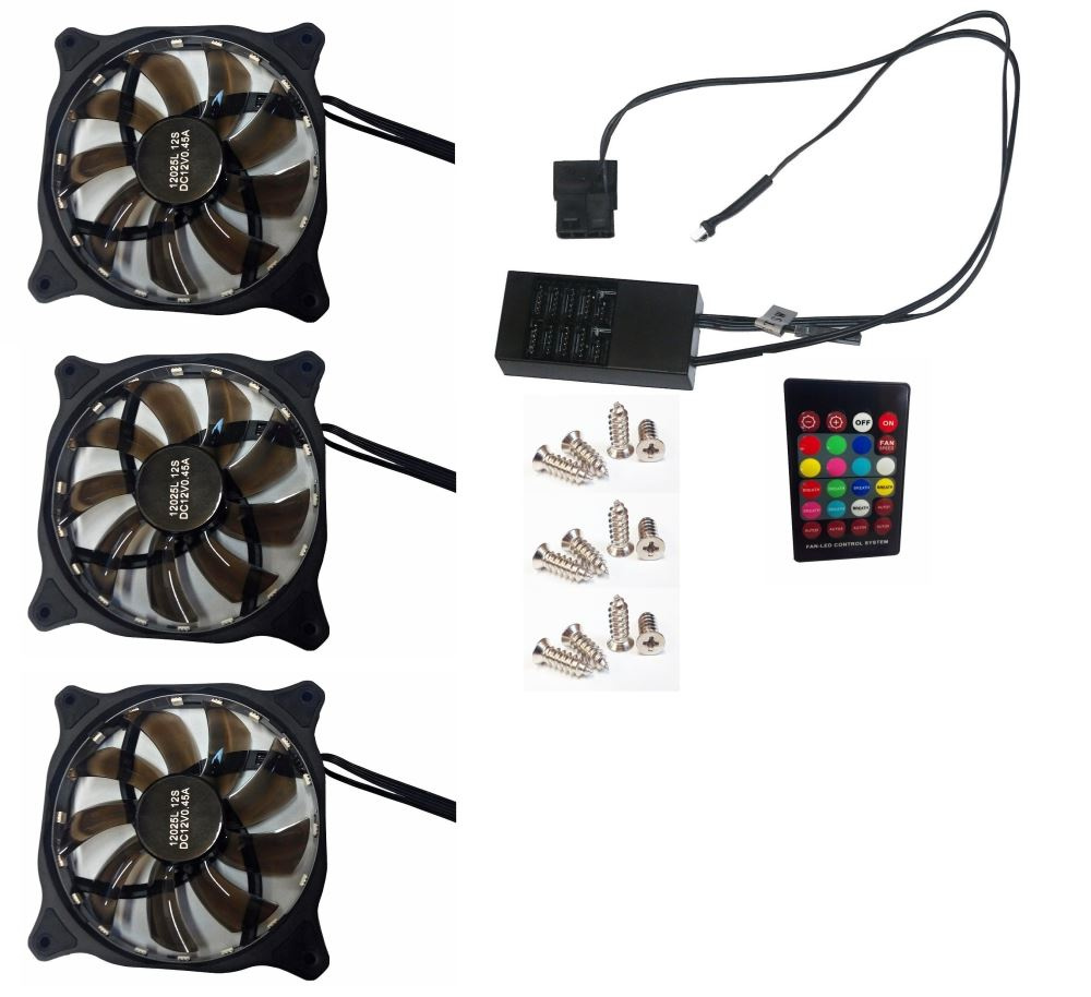 EUROCASE ventilátor RGB 120mm (spot Led), set 3ks + controller
