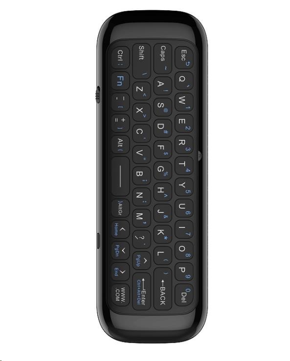 AirMouse a klávesnice 2v1, 6ti-osé měření pohybu, podpora ovládání hlasem, IR programovatelné tlačítko, vestavěná lithiová baterie, podpora Plug & Play, USB adaptér 2.4 GHz