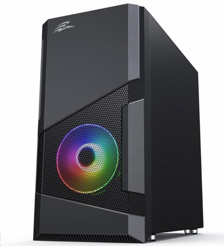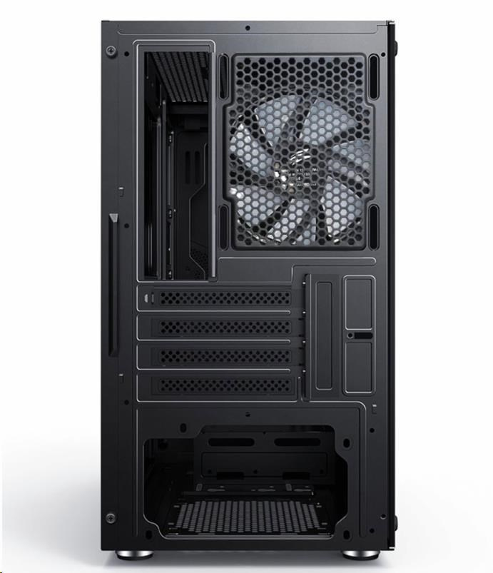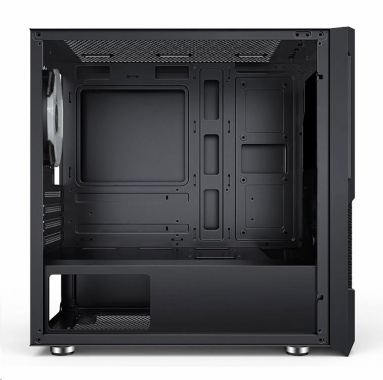Herní mATX skříň s instalovanými RGB rainbow 120 mm ventilátoremy a bočnicí z temerovaného skla. Skříň je určená pro základní desky podporující platformu Intel i AMD. Mimo formátu mATX je kompatibilní i s formátem Mini ITX. Napájecí zdroj se umísťuje do dolní části skříně. Spodní mřížka je osazena vysouvacím prachovým filtrem. Ovládání ventilátorů je možné pomocí připojení k základní desce.