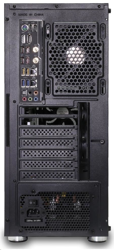 Herní ATX midi tower s instalovanými 4x RGB rainbow 120 mm ventilátory, které se ovládájí pomocí LED tlačítka na horní straně ovládacího panelu. Čelní mřížka přes celý přední kryt zajišťuje efektivní proudění vzduch. Levá strana skříně obsahuje bočnici z tvrzeného skla. Skříň je určená pro základní desky podporující platformu Intel i AMD. Mimo formátu ATX je kompatibilní i s formátem Micro ATXa Mini ITX. Napájecí zdroj se umísťuje do dolní části skříně. Spodní mřížka je osazena vysouvacím prachovým filtrem, horní prachový filter je uchycený magnety a je odnímatelný.