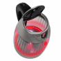 Vybere si úplně každý – k dispozici jsou u tohoto modelu dvě barevné varianty, a to buď s modrým nebo červeným podsvícením. Podsvícení je automaticky aktivováno vždy při zahájení vaření vody a automaticky zhasne po dovaření vody. Podsvícení zajišťují LED diody s dlouhou životností.