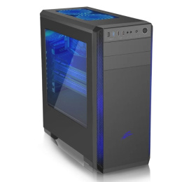 Full ATX midi tower určený pro základní desky podporující platformu Intel i AMD. Mimo formátu ATX je kompatibilní i s formátem Micro ATX. Napájecí zdroj se umísťuje do dolní části skříně a mřížka je osazena prachovým filtrem. Skřín má průhlednou bočnici. Základní specifikace: 1x 5.25" externí 1x 5.25" interní 2x 3.5" interní 3x 2,5 " SSD (nebo 5x společně s 3.5") maximální délka VGA karty: 400 mm maximální výška CPU chladiče: 163 mm Rozšiřující sloty: • 7x PCI slot Přední I/O Porty: • 2x USB2.0 • 1x USB3.0 Ventilátory: • 2x 120 mm nebo 2x 140mm, přední • 2x 120 mm LED modrý, horní - instalovaný • 1x 120 mm LED modrý, zadní - instalovaný Rozměry: • 455 x 205 x 482 mm.