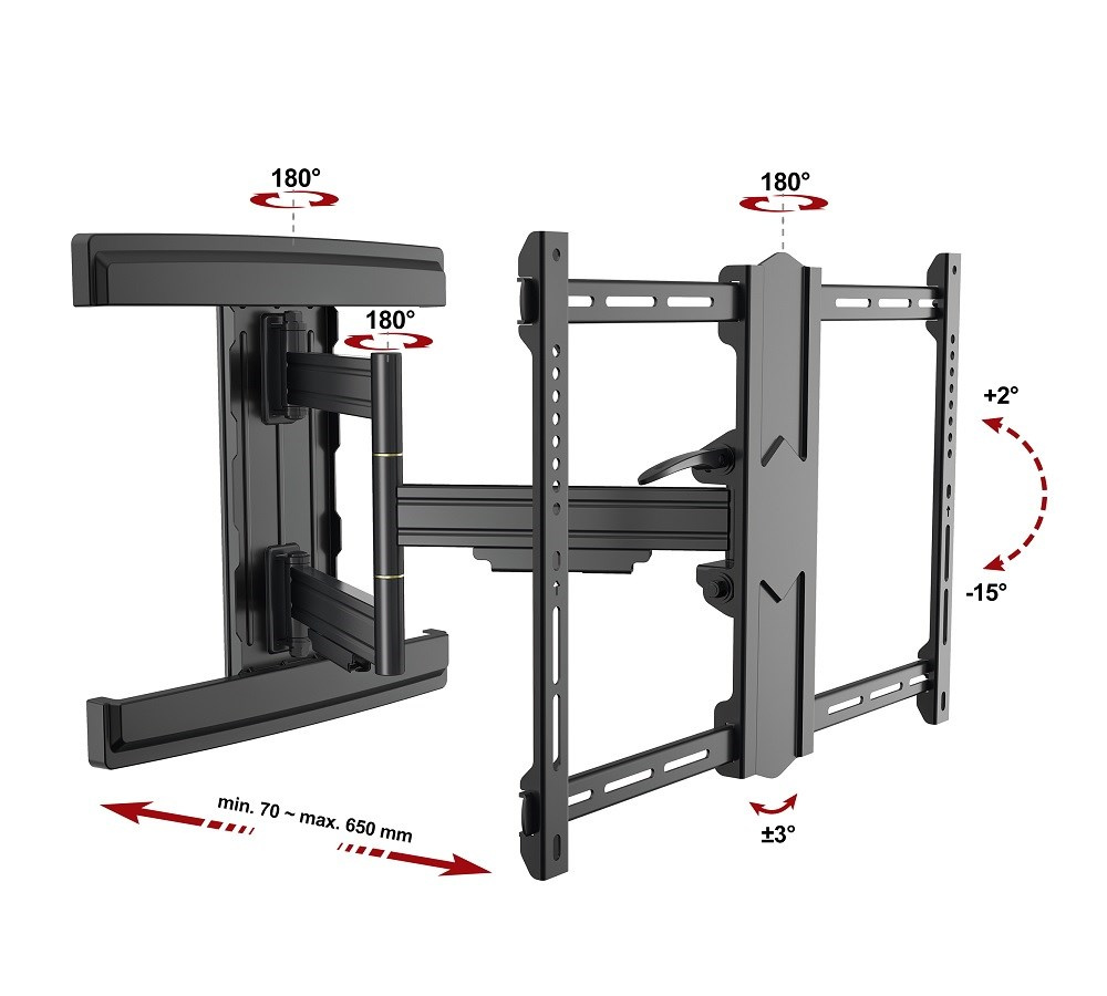 Excelentní držák na televizi Fiber Novelty Norton Nástěnný držák Tv 43"-80" excelentní provedení, vzdálenost od zdi 70-650mm, otočný +/-90°, náklon +2°/-15°, VESA 200x100 až 600x400, nosnost 50kg Záleží Vám jak na kvalitě, tak i designu a v neposlední řadě i na rozumné ceně? Držák Fiber Novelty Norton splňuje všechny tyto požadavky. Nástěnný polohovatelný držák pro zavěšení televizorů s úhlopříčkami 43" až 80" a naprosto bezpečnou nosností 50kg (držák byl testován při zatížení 120kg). Plné nastavení pozice televizoru s možností každodenní změny polohy - otáčení do stran, naklápění, nastavení vzdálenosti od zdi, korekce roviny. Vše v naprosto úžasném designu, který ocení určitě každý. Na držák je poskytnuta záruka 3 roky. Držák QLED OLED LED LCD plazma Tv v excelentním provedení - Fiber Novelty Norton Technické údaje: nosnost 50kg na televizory a monitory s úhlopříčkou 43" až 80" na všechny typy a značky televizorů, které podporují VESA standardy podporuje VESA standardy v rozmezí 200x100 až 600x400 nastavitelná vzdálenost od zdi v rozmezí 70mm až 650mm otáčení Tv do stran +/- 90° náklon Tv v rozmezí +2° až -15° korekce roviny obrazovky +/- 3° krásný moderní design profesionální konstrukce, naprostá bezpečnost a spolehlivost precizní provedení s důrazem na detail krytky na kabeláž a na nástěnný úchyt dodáván včetně instalačního materiálu barevné provedení černé záruka 5 let Držák na televize a monitory Fiber Novelty Norton Podporované VESA standardy pro zavěšení televizorů: VESA 200x100 VESA 200x200 VESA 300x100 VESA 300x200 a 200x300 VESA 300x300 VESA 400x200 a 200x400 VESA 400x300 a 300x400 VESA 400x400 VESA 500x300 VESA 600x400 všechny i nestandardní VESA rozměry v rozmezí 200x100 až 600x400 Precizní zpracování s důrazem na detail, krásné designové provedení a nejvyšší míra spolehlivosti a bezpečnosti - to jsou hlavní přednosti držáků Fiber Novelty Norton. Profesionální držák na televize Fiber Novelty Norton Držáky Fiber Novelty Norton jsou vhodné pro zavěšení všech dostupných typů televizorů i monitorů: zavěšení LED televizorů zavěšení LCD televizorů zavěšení OLED televizorů zavěšení QLED televizorů zavěšení prohnutých Curved televizorů zavěšení plazmových televizorů zavěšení LCD, LED monitorů zavěšení TFT monitorů zavěšení speciálních televizorů a monitorů zavěšení dotykových televizorů a monitorů.