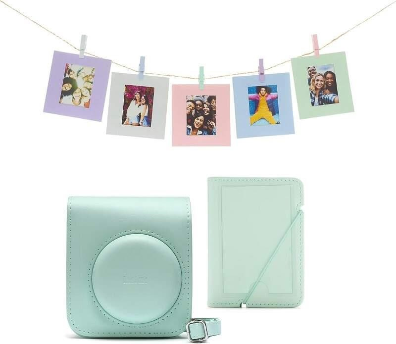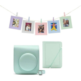 Oficiální sada příslušenství pro instax mini 12 obsahuje: barevně sladěné pouzdro s nastavitelným ramenním popruhem, mini fotoalbum na 29 fotografií s krycím páskem a sadu 10 závěsných kartiček se šňůrkou. Ideální balíček příslušenství barevně sladěný s pěti barvami fotoaparátu – Pastelově modrá, Mátově zelená, Květinově růžová, Fialová šeříková a Hliněně bílá. Jedinečný doplněk pro váš fotoaparát instax mini 12.