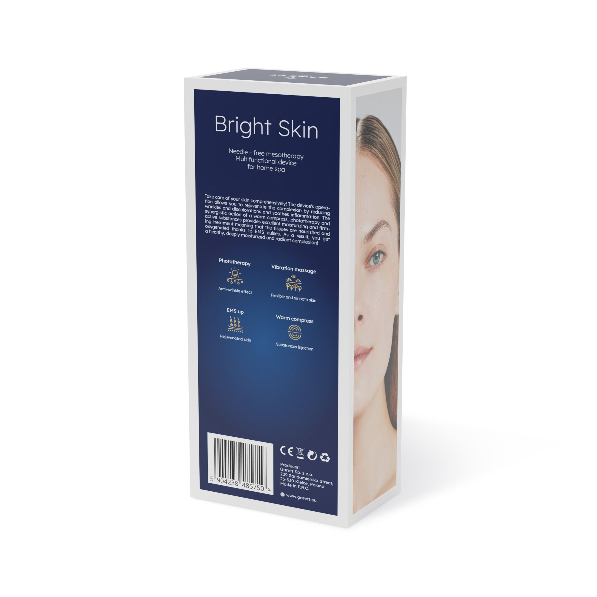 Chcete-li dosáhnout profesionálních výsledků v domácích podmínkách, je Garett Beauty Bright Skin ideální volbou. Toto zařízení kombinuje technologii mezoterapie, světelné terapie, EMS mikroproudů, radiofrekvence a sonické mikromasáže. Díky těmto funkcím pomáhá s redukcí jemných linek, zpevněním kontur obličeje, zlepšením elasticity pleti a celkovým omlazením. Zároveň podporuje vstřebávání kosmetických přípravků, čímž zvyšuje jejich účinnost.