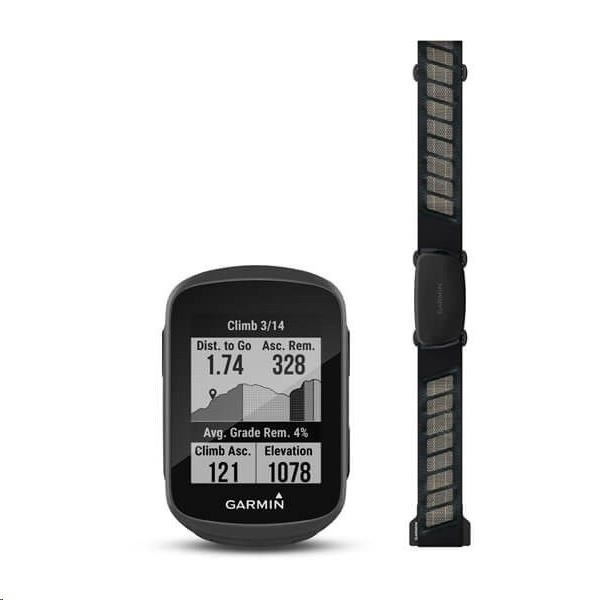 Malý a lehký chytrý GPS cyklopočítač. Balení včetně snímače srdečního tepu HRM Premium.