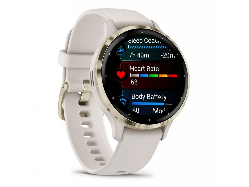 Garmin Venu® 3S, Nerezová luneta Soft Gold, pouzdro Ivory, silikonový řemínek