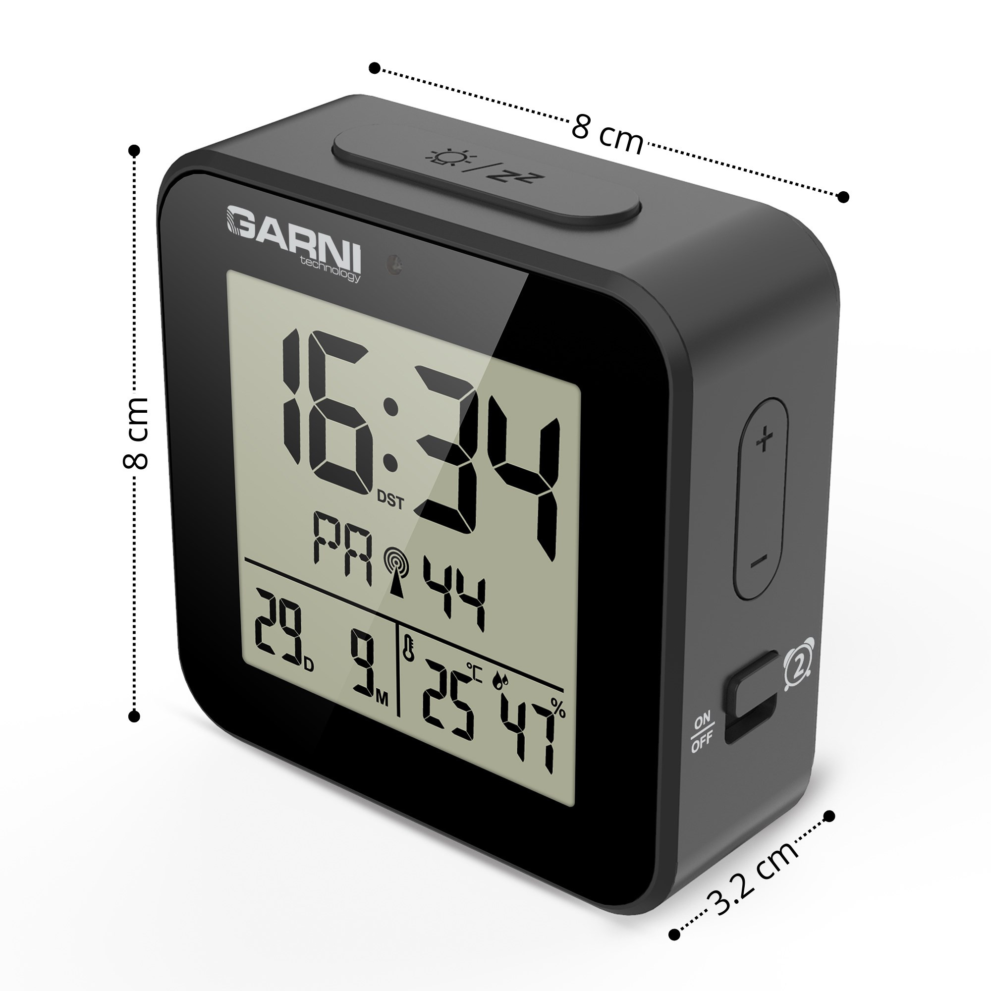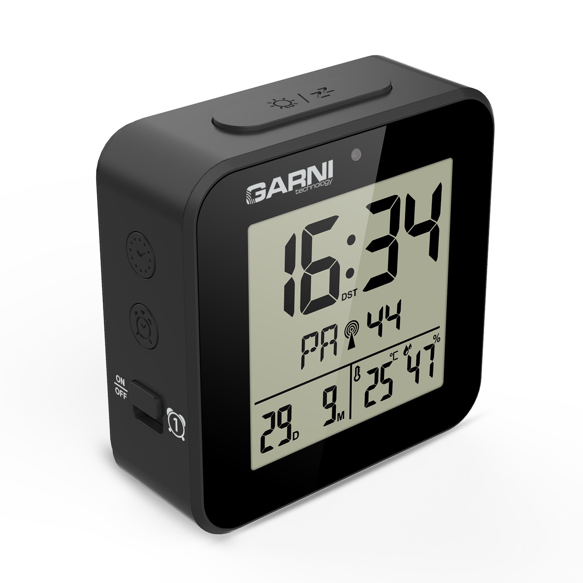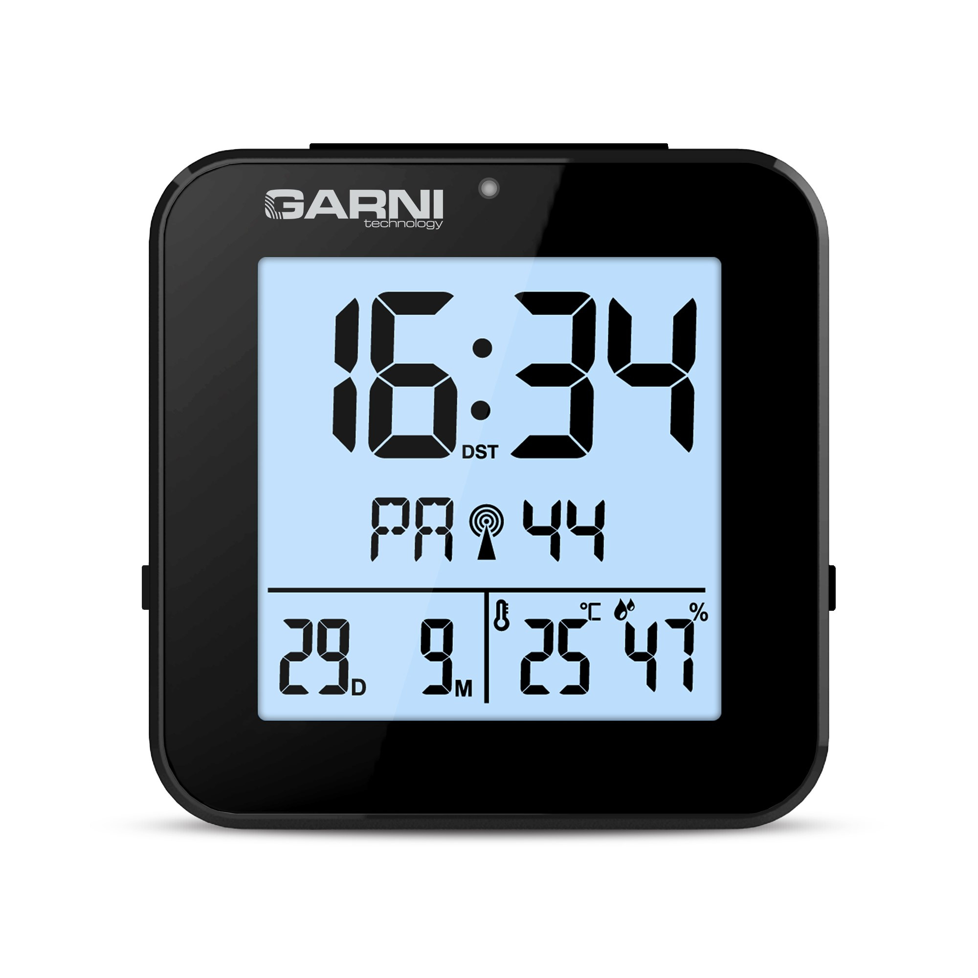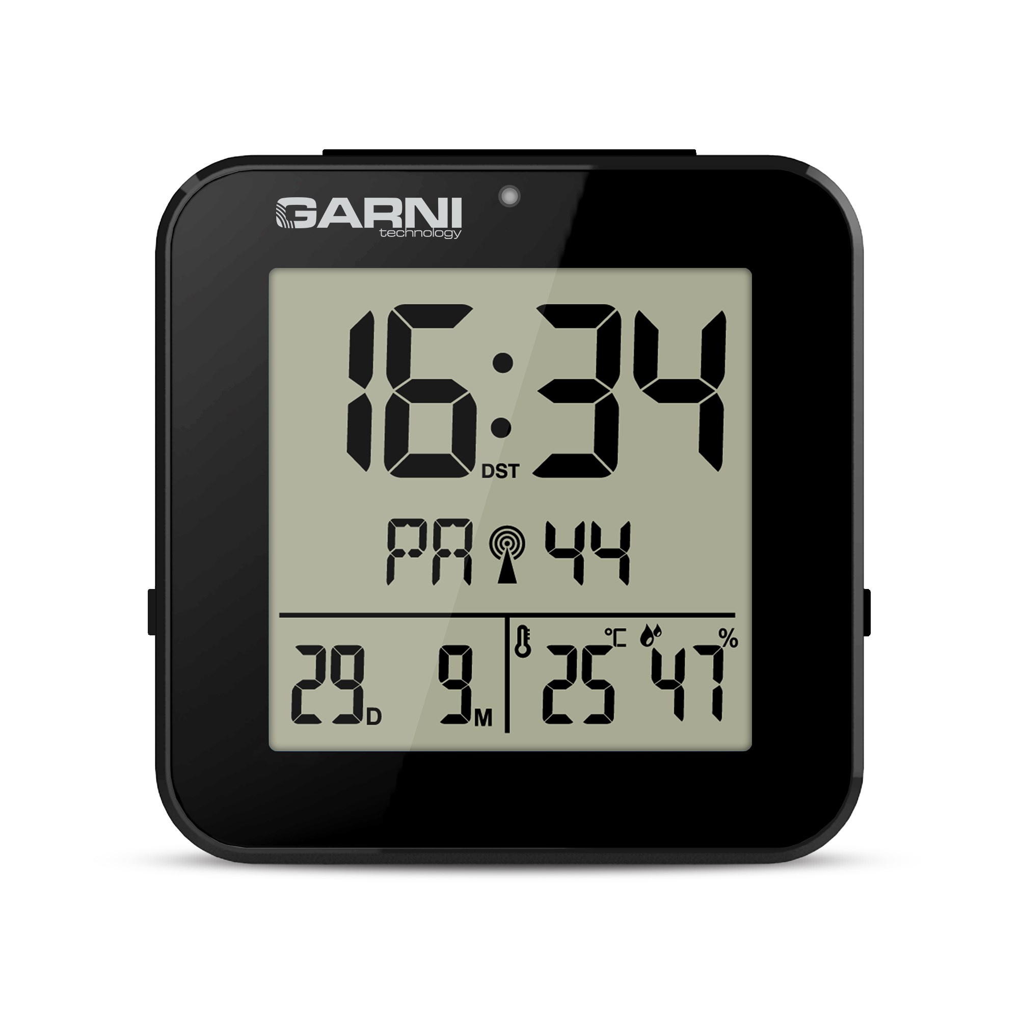 GARNI 138B - digitální budík s teploměrem a vlhkoměrem, černá