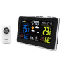 Třetí generace meteorologické stanice se špičkovým inverzním barevným VA displejem s časem řízeným rádiovým signálem DCF-77, budíkem, měřením vnitřní teploty, relativní vlhkosti a absolutního barometrického tlaku, bezdrátovým čidlem pro měření vnější teploty a relativní vlhkosti a USB portem pro napájení externích zařízení