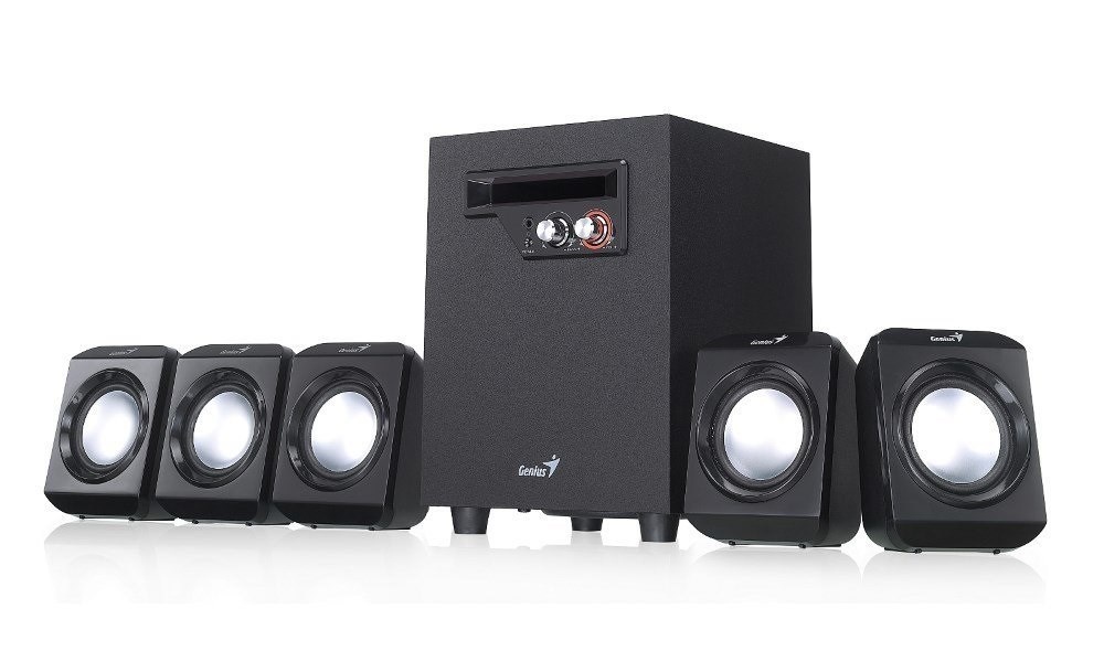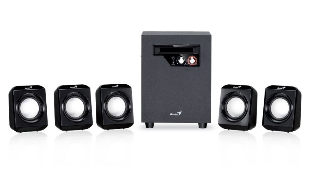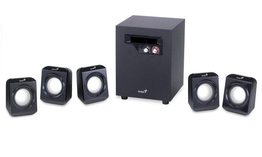 Elegantní systém reproduktorů v konfiguraci 5.1 nabízí celkový výkon 26 W. Sestava je tvořena kvalitním subwooferem s 4" driverem, který disponuje výkonem 14,5 W RMS a stará se o věrné a plné basové tóny. Subwoofer je doplněn pěti satelity, kdy každý disponuje výkonem 2,3 W RMS. Ovládání hlasitosti i basů se nachází na přední straně subwooferu. Součástí balení je napájecí adaptér 100-240 V.