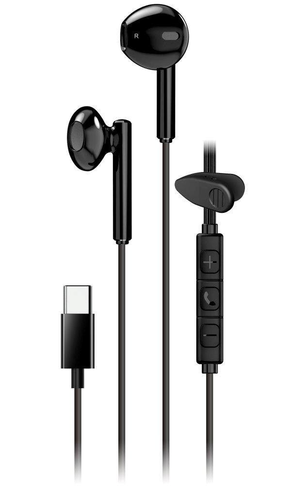 Lehký headset do uší určený pro mobilní telefony, tablety a notebooky. Nabízí kvalitní zvuk pro poslech hudby i telefonní hovory. Disponuje ovládáním hlasitosti přímo na kabelu a vestavěným mikrofonem. Připojení je realizováno skrze USB-C konektor. Díky rotačnímu klipu umožňuje pohodlné uchycení kabelu k límci.