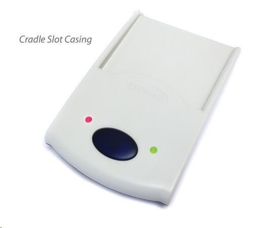 RFID reader, 125 kHz (EM4102), slot, USB (RS232 emulation), dimensions (WxHxD): 65x23x100mm.