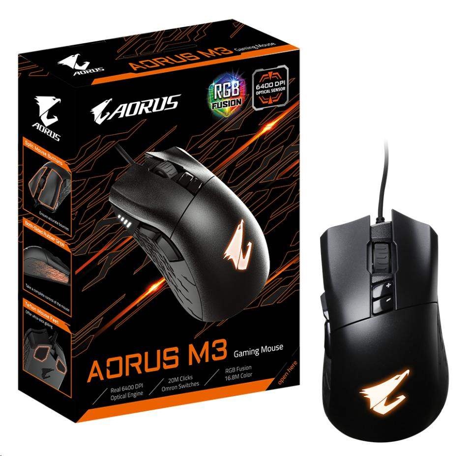GIGABYTE myš Gaming Mouse AORUS M3, USB, Optical, up to 6400 DPI