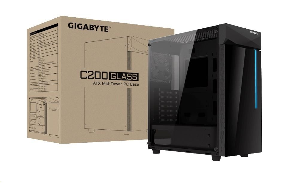 GIGABYTE case GB-C200G, RGB Lighting, bez zdroje, transparentní bok, Mid tower