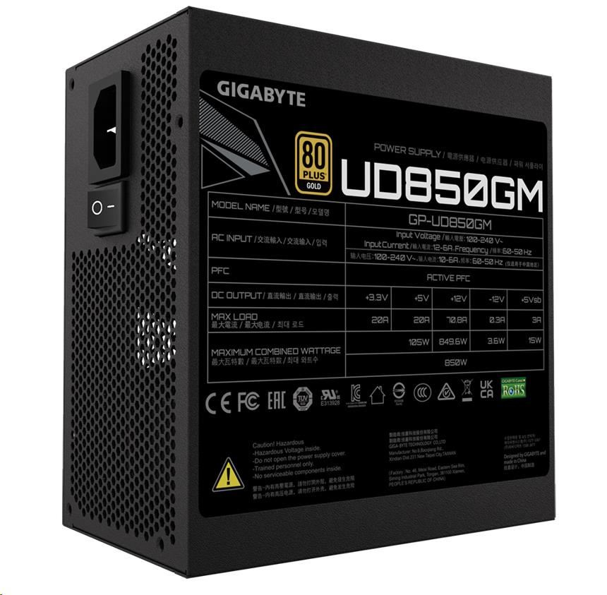 GIGABYTE zdroj UD850GM, 850W, 80+ Gold, 120mm fan