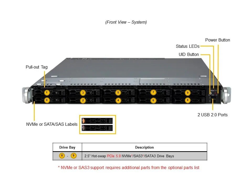 Supermicro SYS-111C-NR je výkonný 1U rackový server optimalizovaný pro databázové aplikace a podnikové výpočty. Tento systém využívá procesory Intel Xeon Scalable 4. generace a podporuje vysokorychlostní DDR5 paměť, což zajišťuje spolehlivý výkon a škálovatelnost pro širokou škálu pracovních zátěží.