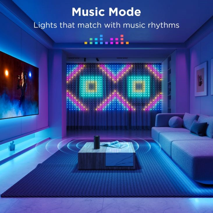 Použitím tří opon získáte neuvěřitelných 4,5 x 1,5m plochy pro realizaci svých nápadů. Ať už chcete podtrhnout sváteční atmosféru, nebo jen dáte průchod fantazii, větší plochu, než je opona Govee budete hledat složitě.